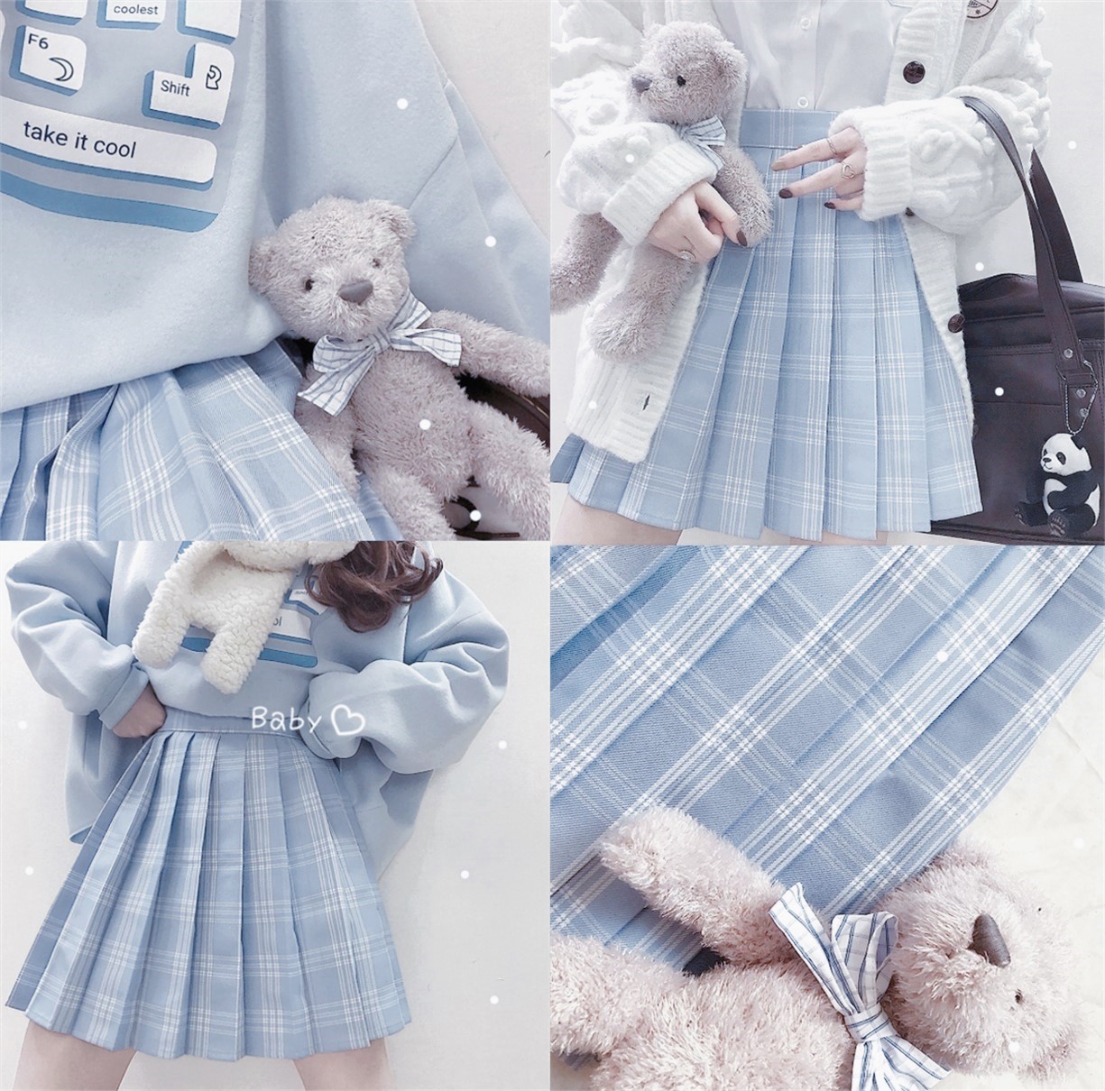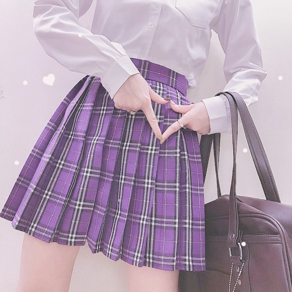 [XS-4XL] Jfashion purple grid seifuku skirt C00183-1