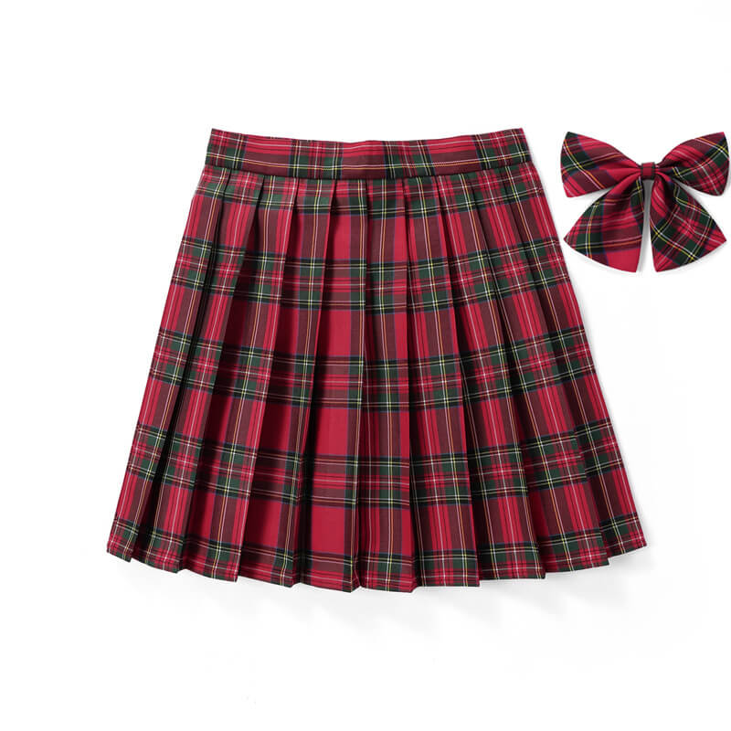 [Red] JK plaid pleated skirt