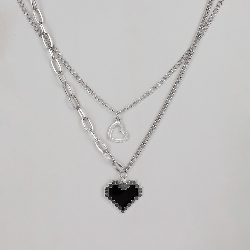 Pixel heart double chains necklace