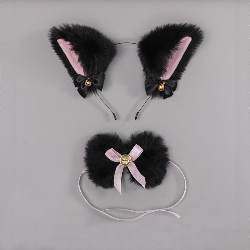 Kitty ears head wear + Pompon bow choker