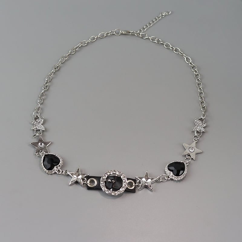Material: Alloy, Acrylic zircon Color: Silver Size: Length: 45cm+5cm