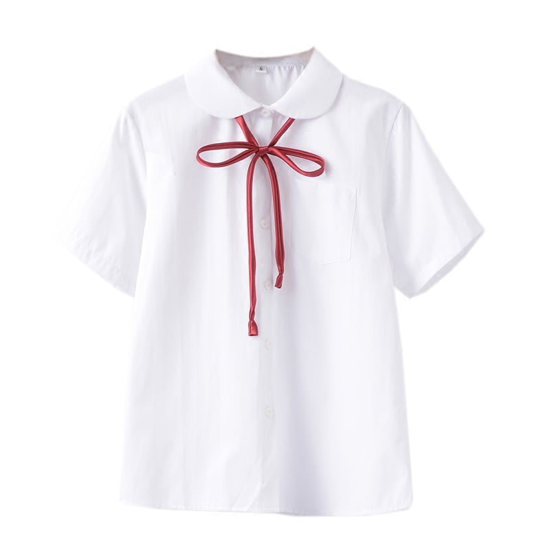 [XS-2XL] JK Seifuku White/Pink Blouse FREE Ribbon C01414