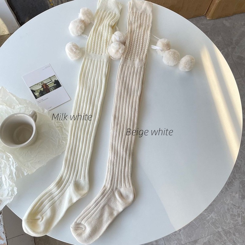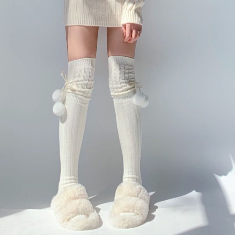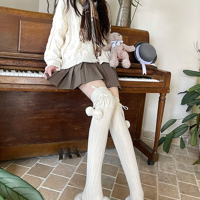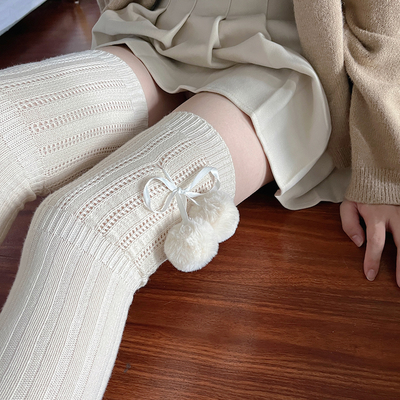 Soft winter pompon stockings c0162