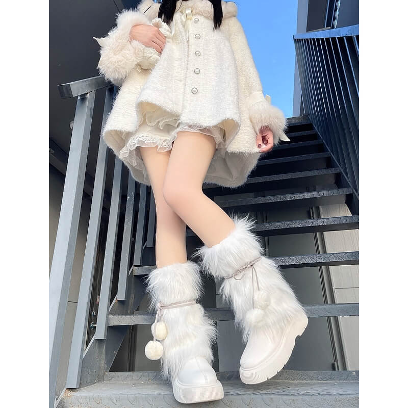 Material: Artificial fur fiber Color: White with pink ribbon, White with grey ribbon