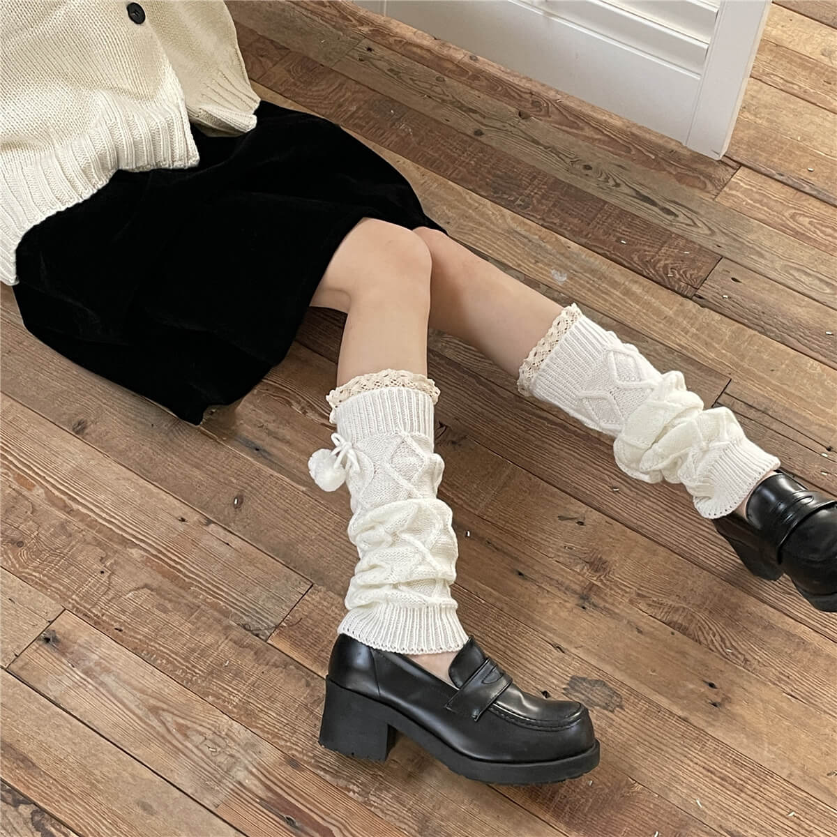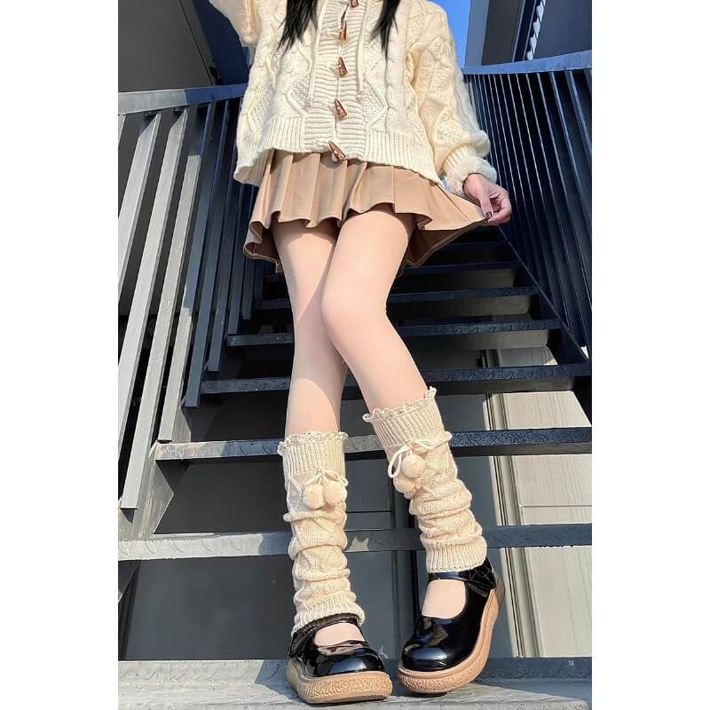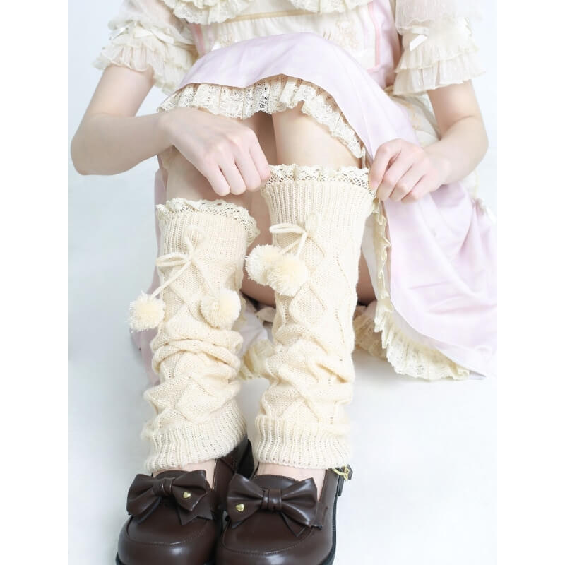 Kawaii pompon winter leg warmers c0197