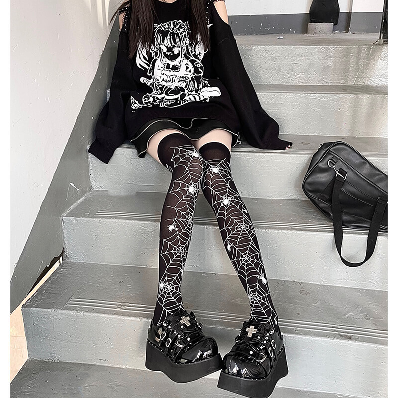 Material: Polyester Color: Black Pattern: Spider web, Bats, Pink bones