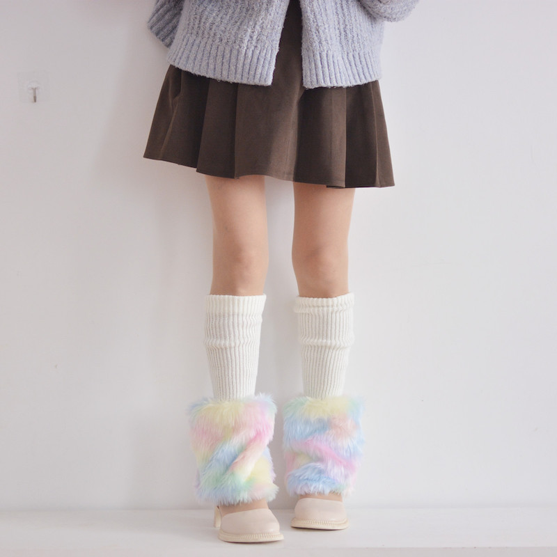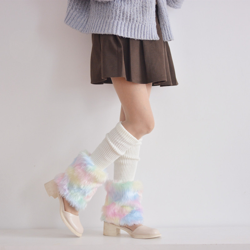 Material: Artificial fur Color: Rainbow Thickness: Thickened warm