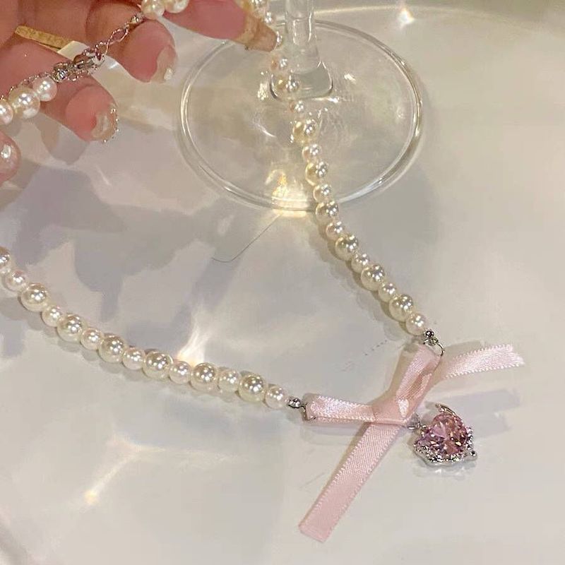 Material: Alloy electroplate Color: Pink heart Size: Length: 39+5cm Width: 5cm Weight: 13.14g