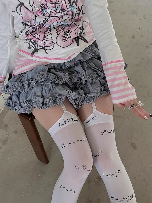 Material: Cotton velvet Color: White Option: Suspender Stockings, Over knee stockings,
