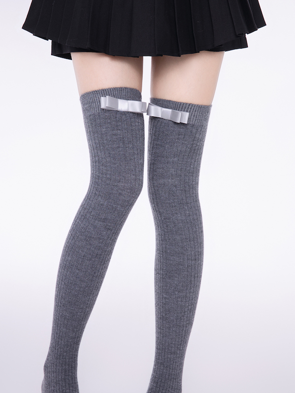 Winter woolen knot bow stockings