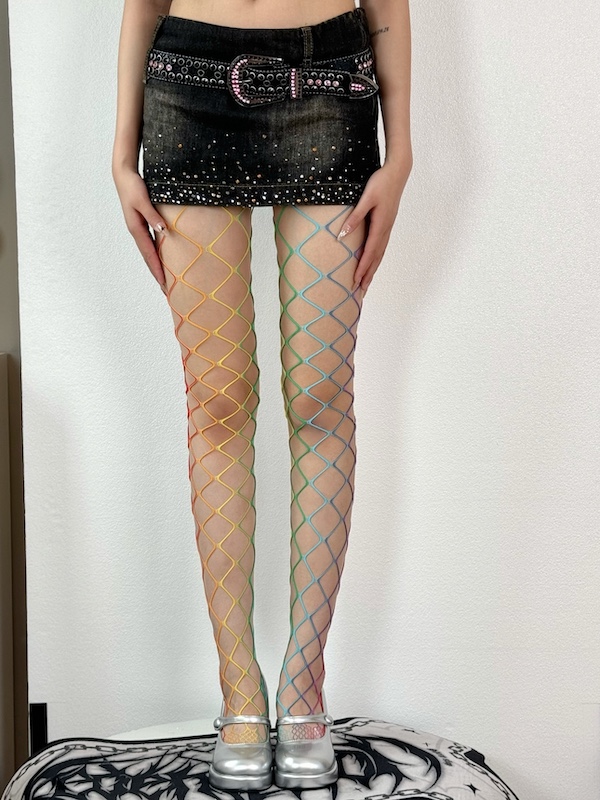 y2k rainbow mesh fishnet tights